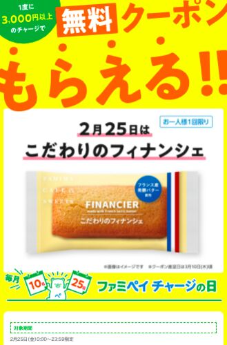 毎月10日,25日はファミペイチャージの日。 3,000円以上チャージするとなにかもらえます。 今日3/10は「かぶりつきカルパス」です。 これは初めてですね。おつまみ歓迎。 今回は500円玉と100円玉がたくさんあったので、現金でチャージしました。 クーポンが2…