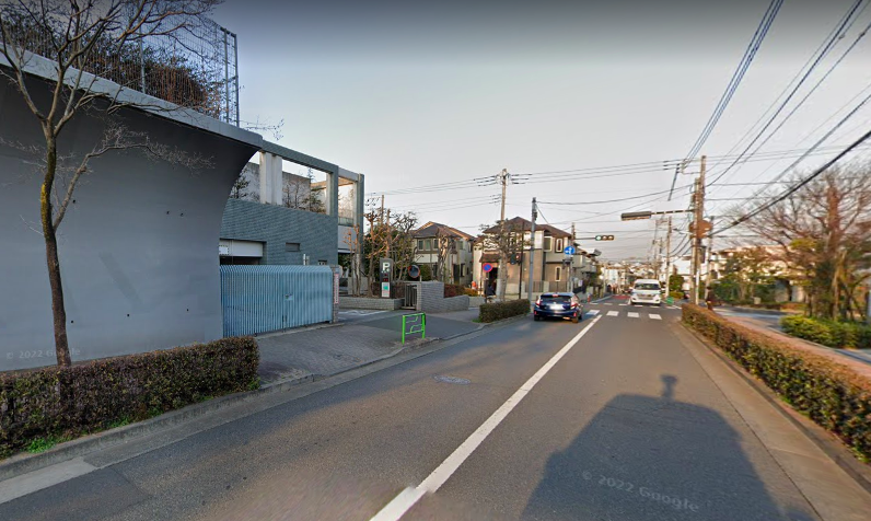 グランド北側の早稲田大学のグランドとの間の道路は広めです。