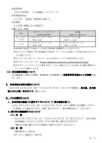 (京王電鉄はプレスリリースを短期間で消すため記録します)