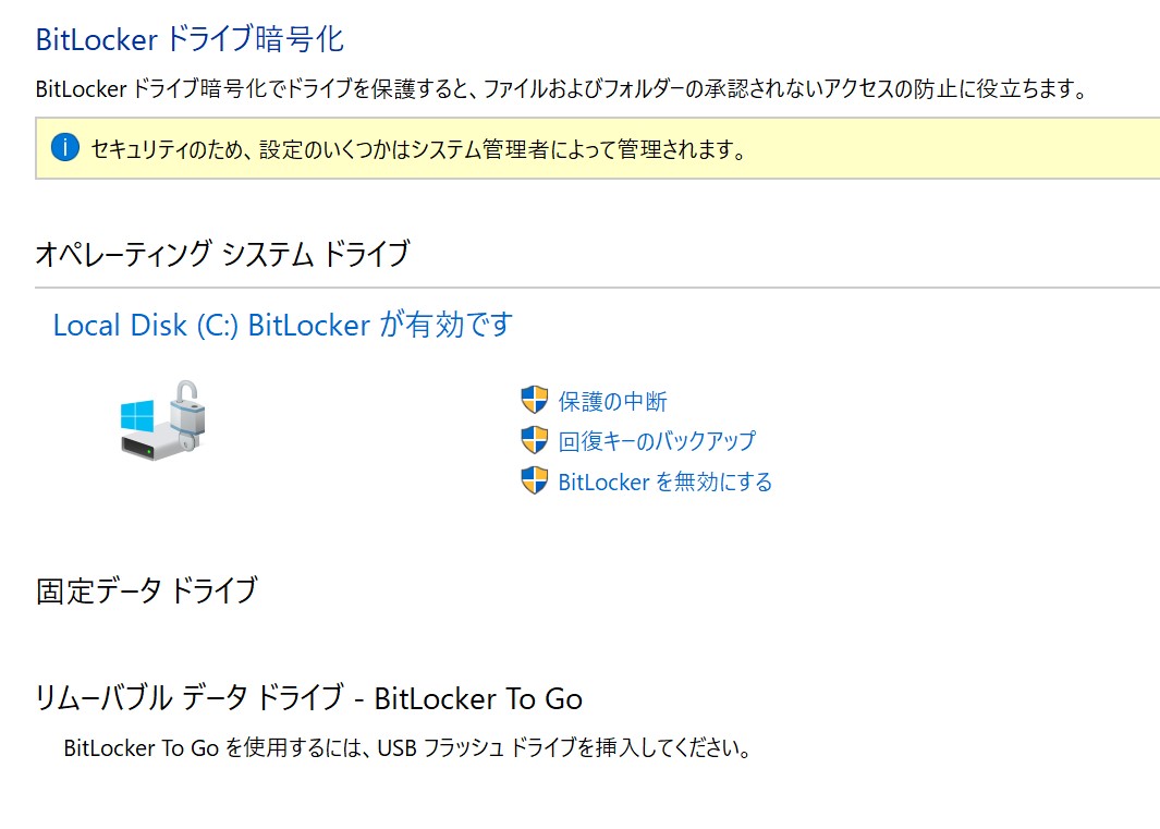 自分や家族がが使っているものがbitlockerの暗号化がかかっているかも把握していなかったので、確認します。